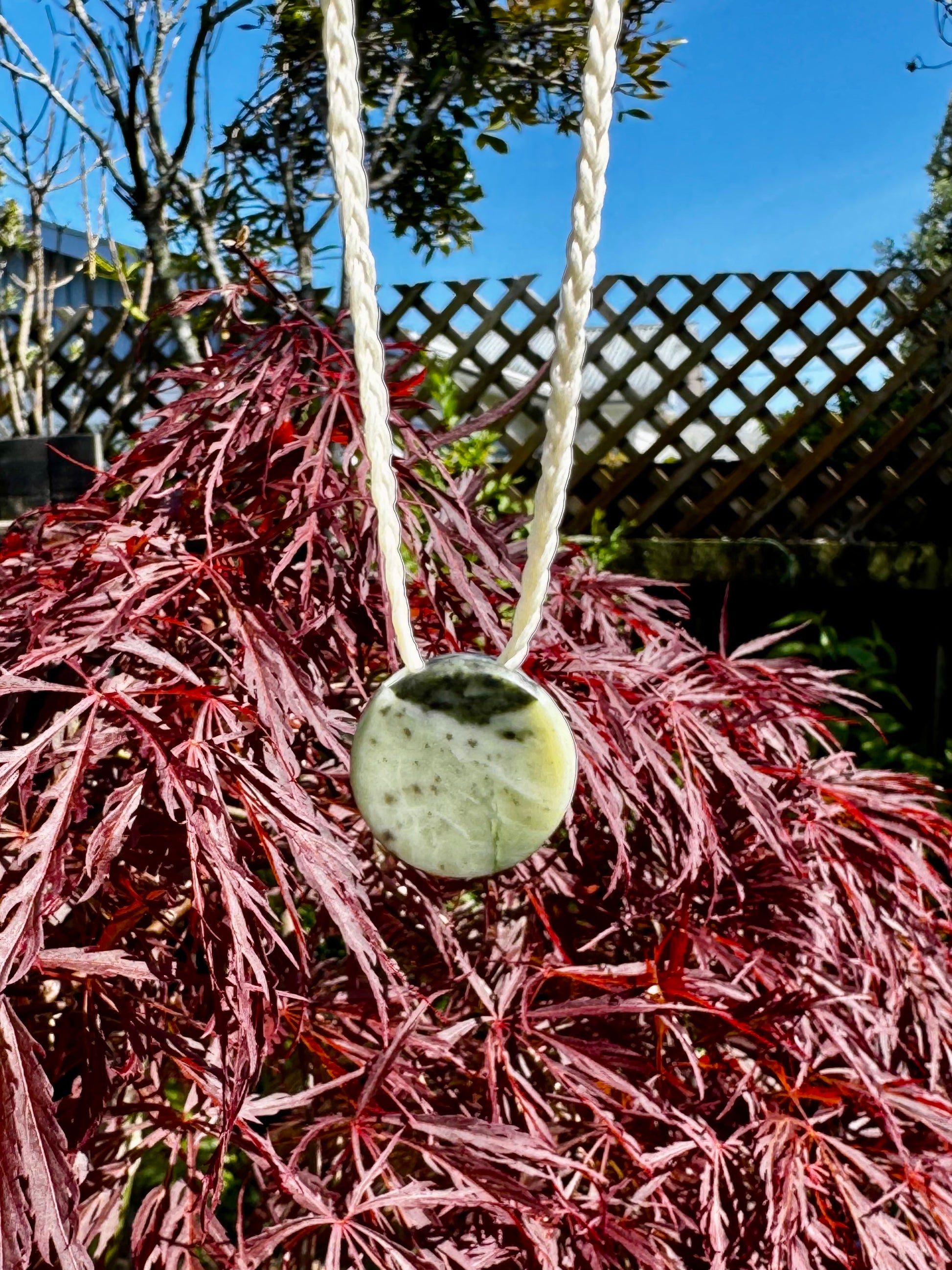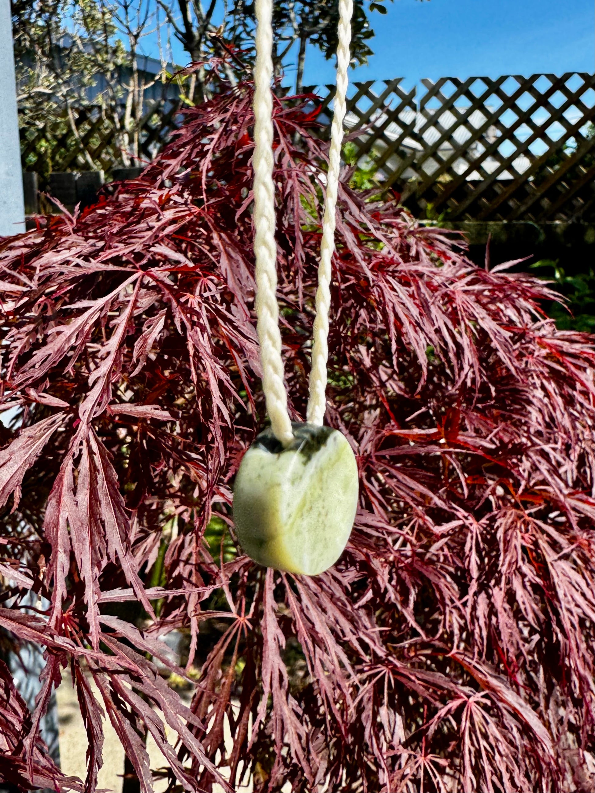Carved from a serene blend of light and deep green Whakatū pounamu, this Hā pendant embodies the breath of life, calm, grounding, and ever-flowing.
