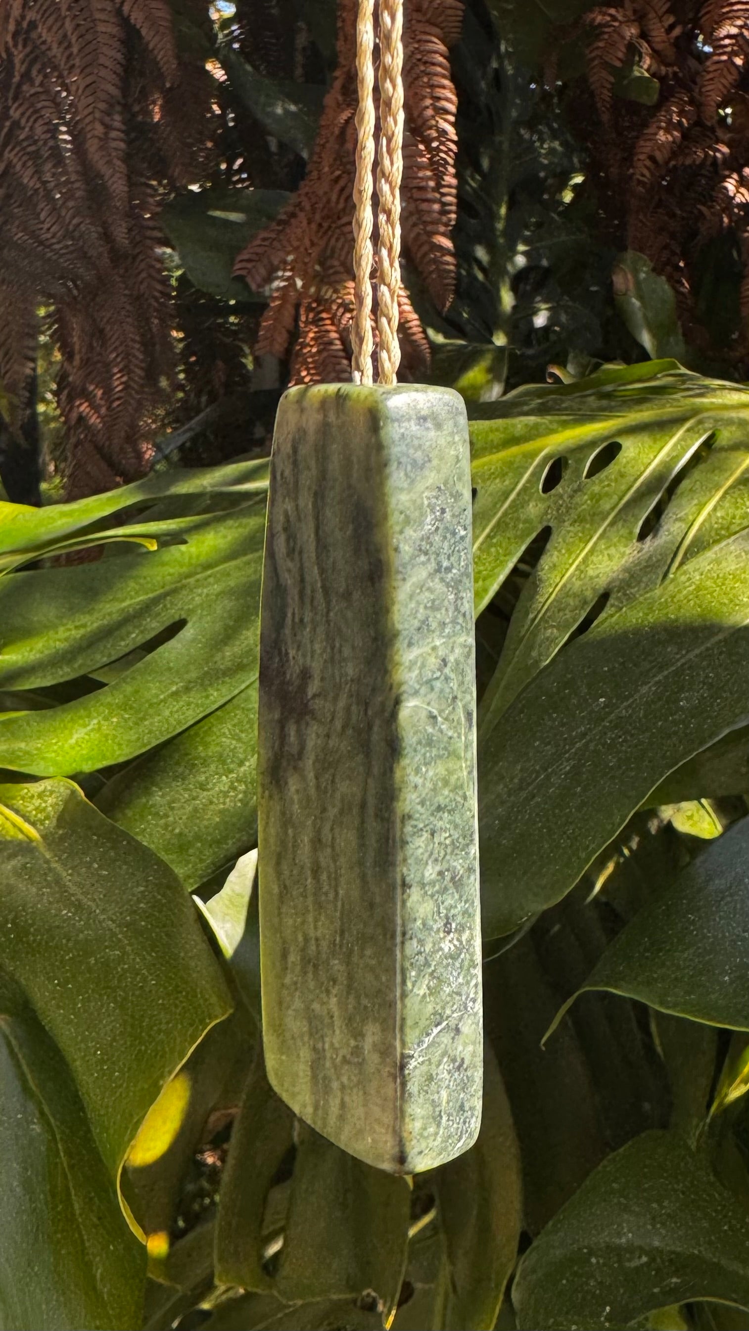 This toki pendant has been carved from rare Te Tau Ihu nephrite, found in a local river in the Nelson/Tasman region and hand shaped into the taonga you see here.